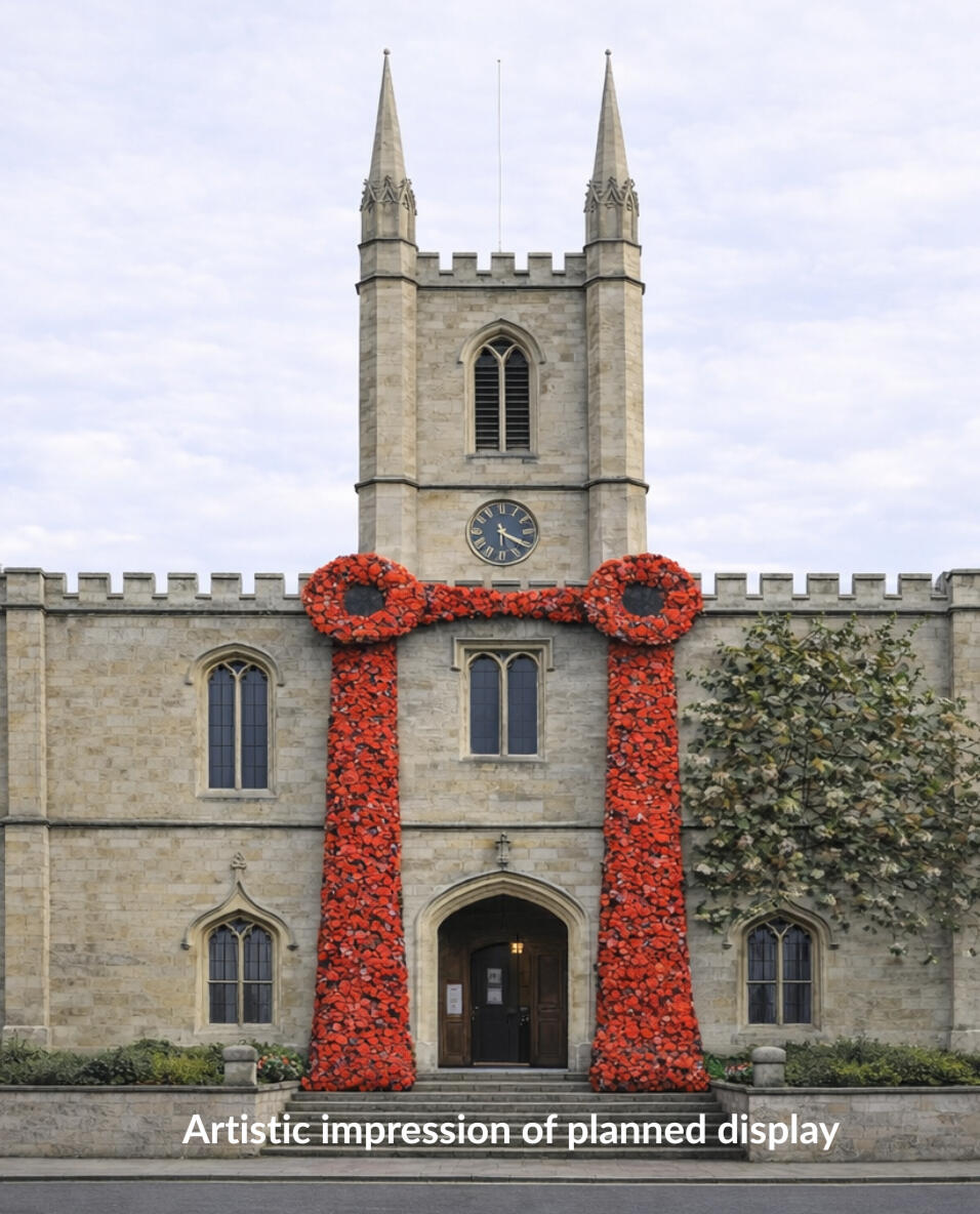 Inside the church, we will showcase the creativity of children and young people from across Windsor.Early Years, primary, secondary and further education settings — including maintained, academy, independent and special schools — will be invited to create poppy murals using simple guidance from the project team. These will be suspended from the first-floor balconies, forming a striking installation that reflects remembrance through young voices and imagination.We hope to engage around 30 local schools in partnership with Achieving for Children and wider networks. If you'd like to be involved sooner, we would warmly welcome support — including PTA help with yarn or recycled bottle poppies for the outdoor displays.